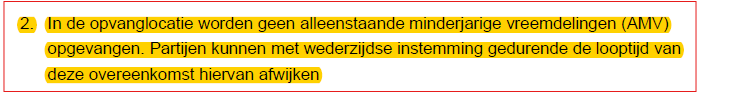 Echter wat ze erbij is vergeten te vertellen is dat “mocht het alsnog nodig zijn, dan kunnen we (gemeente en COA) afspreken dat er wel AMV’ers kunnen gaan wonen”. Een melding aan de gemeenteraad volstaat dan. Zoals vermeld staat in het concept bestuursovereenkomst. Zie onderstaande knipsel.